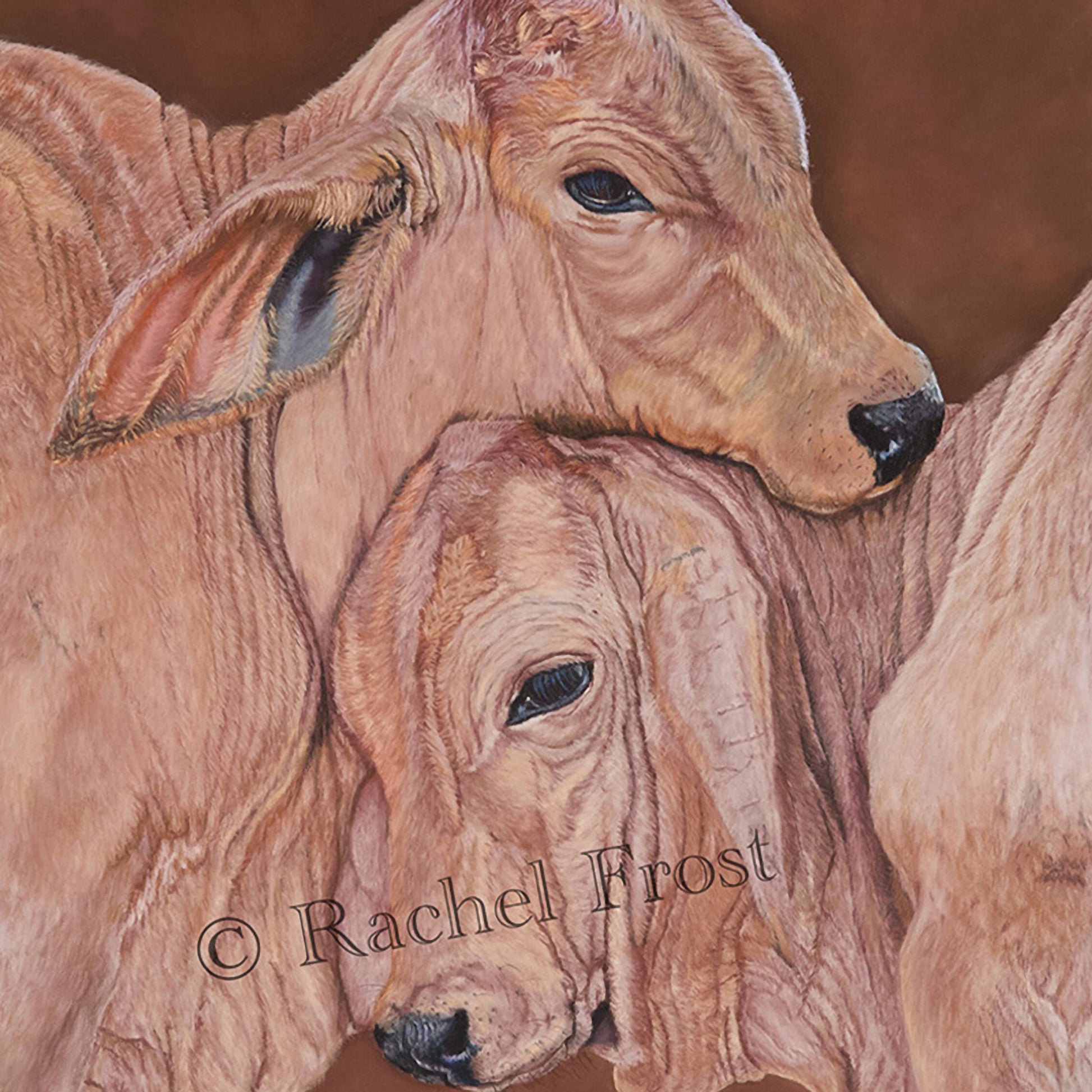 There is something about Brahman calves - with their big floppy ears and playful spirit. This piece captures a light-hearted moment between two calves, reminding us that even in a hardworking life, there's always room for a little fun.